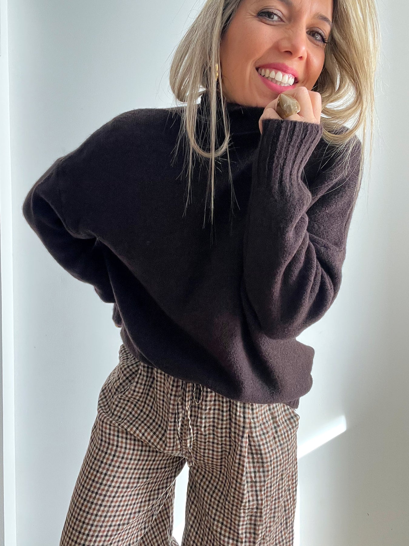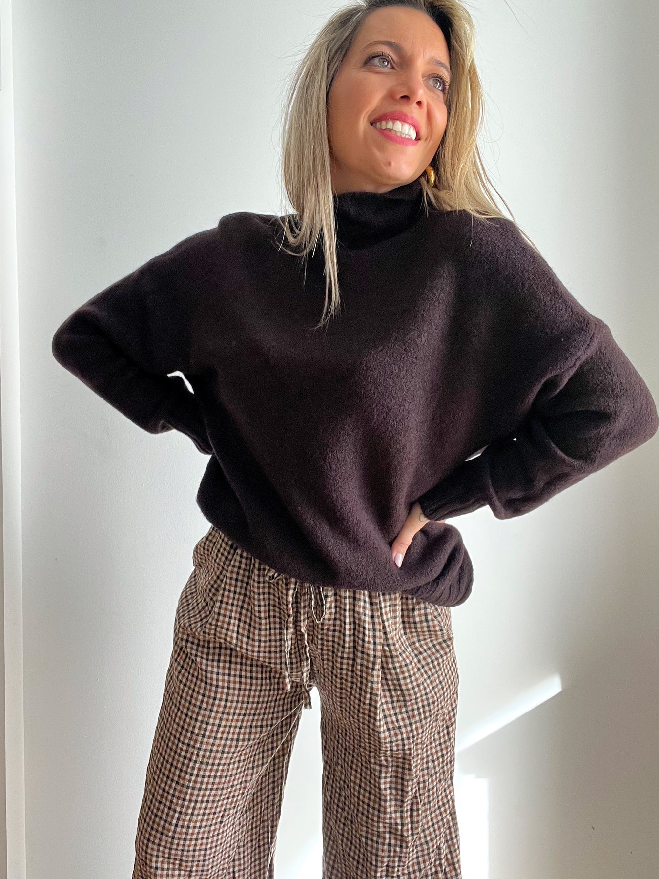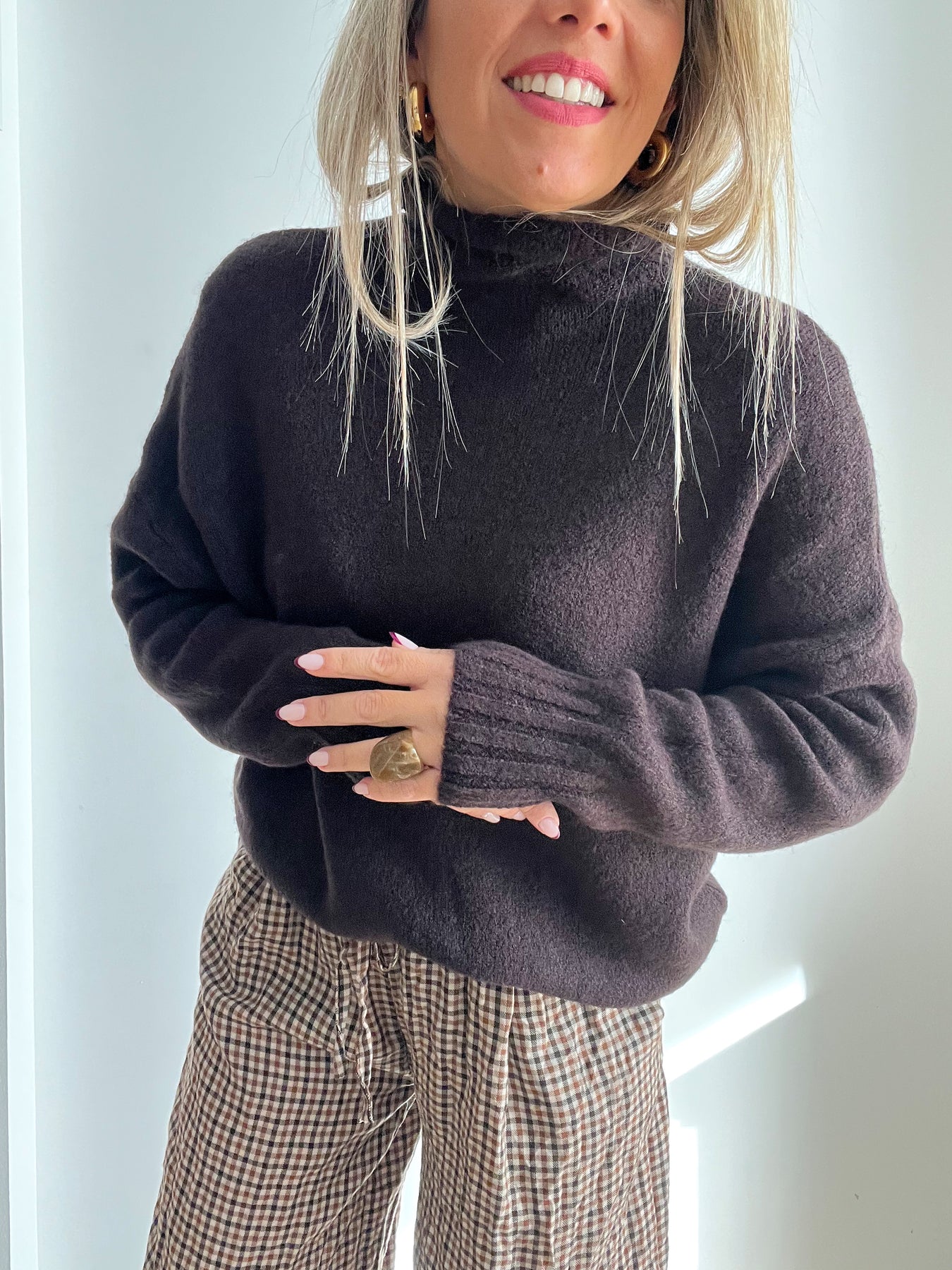 · El Jersey Torino Choco es suavidad y estilo en una sola prenda. Con cuello alto relajado, textura gustosa y un fit cómodo que sienta genial.