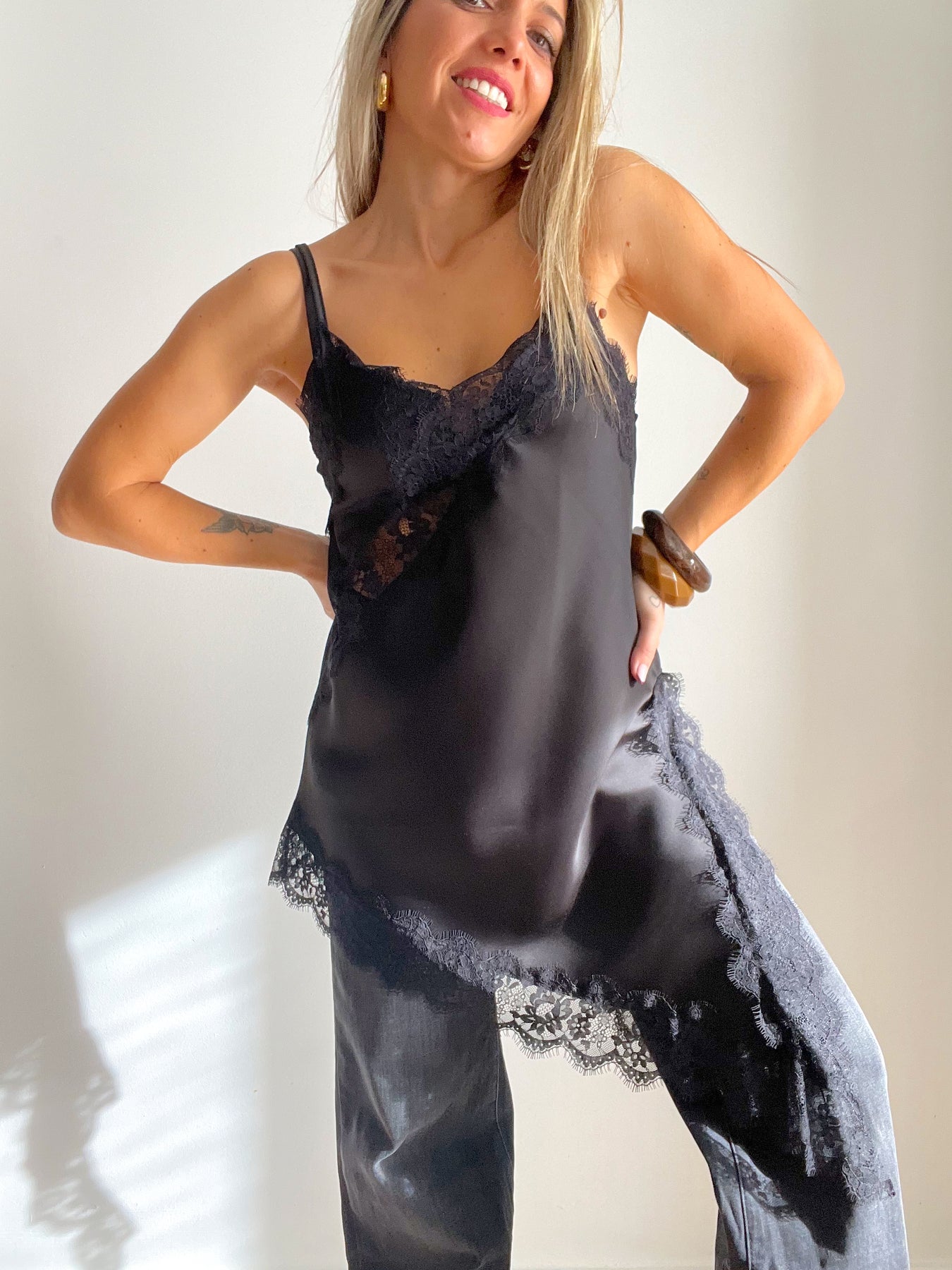 · El Top Milano Noir es el lencero perfecto para elevar cualquier look. Con tejido satinado, encaje delicado y un corte fluido que favorece muchísimo.