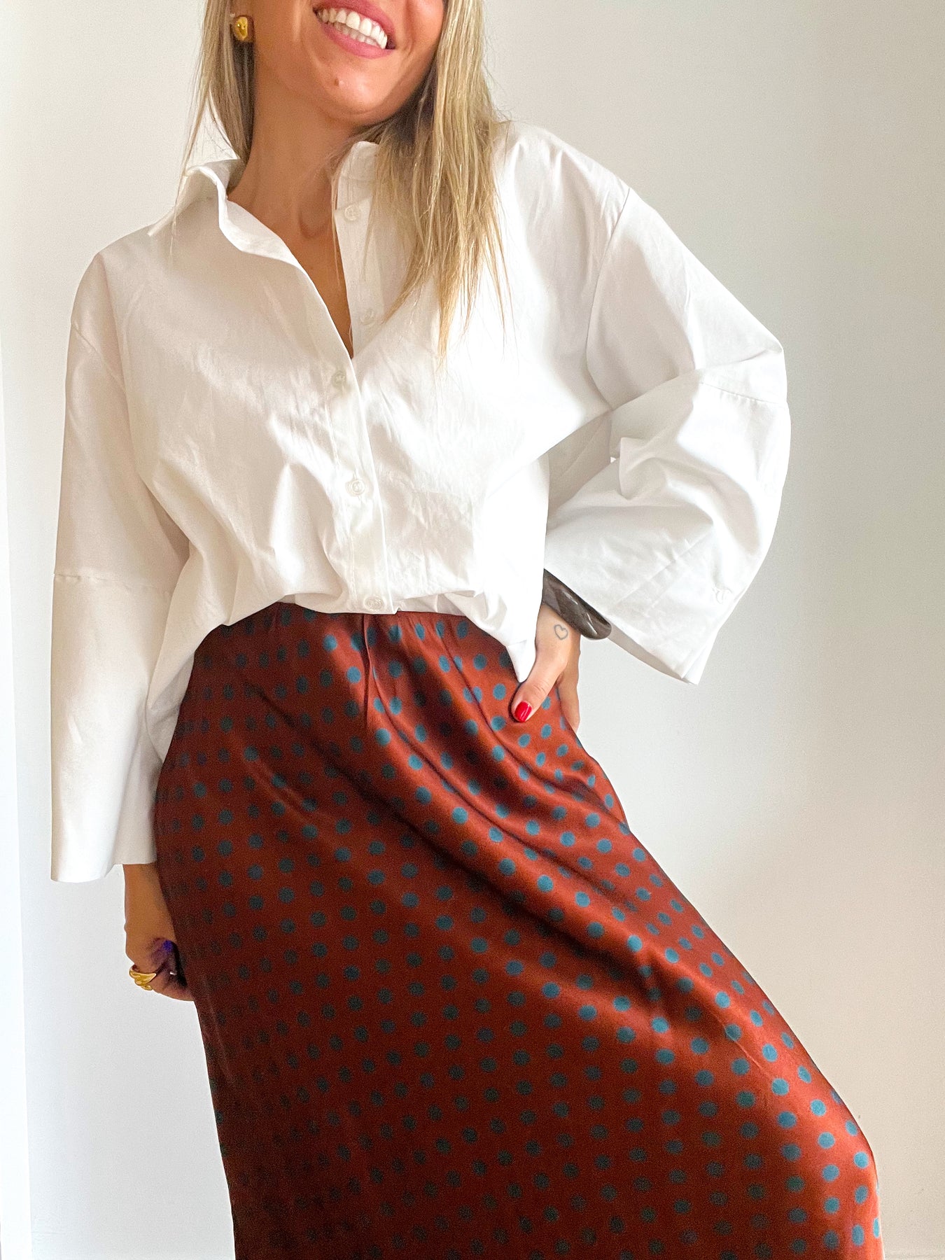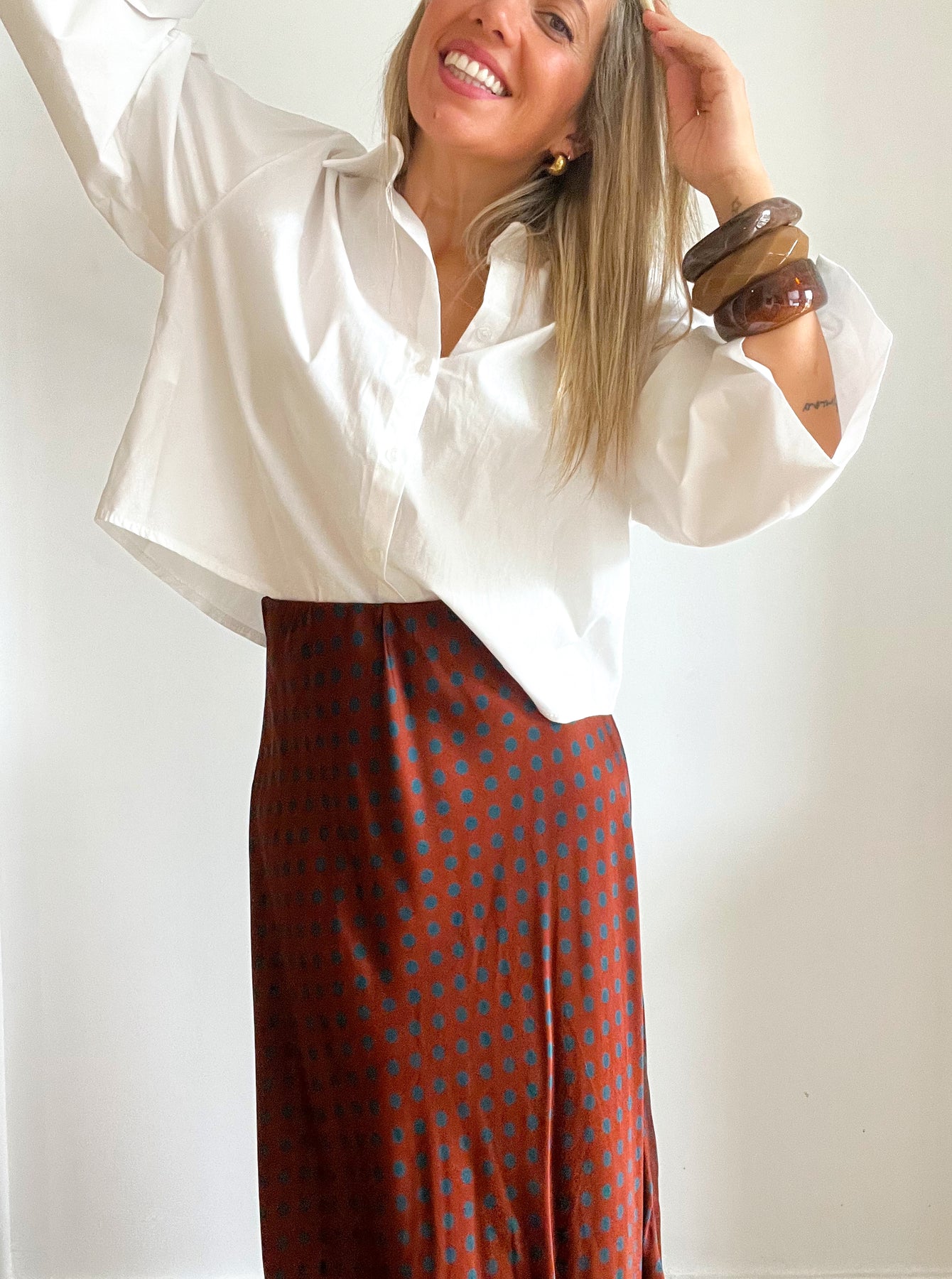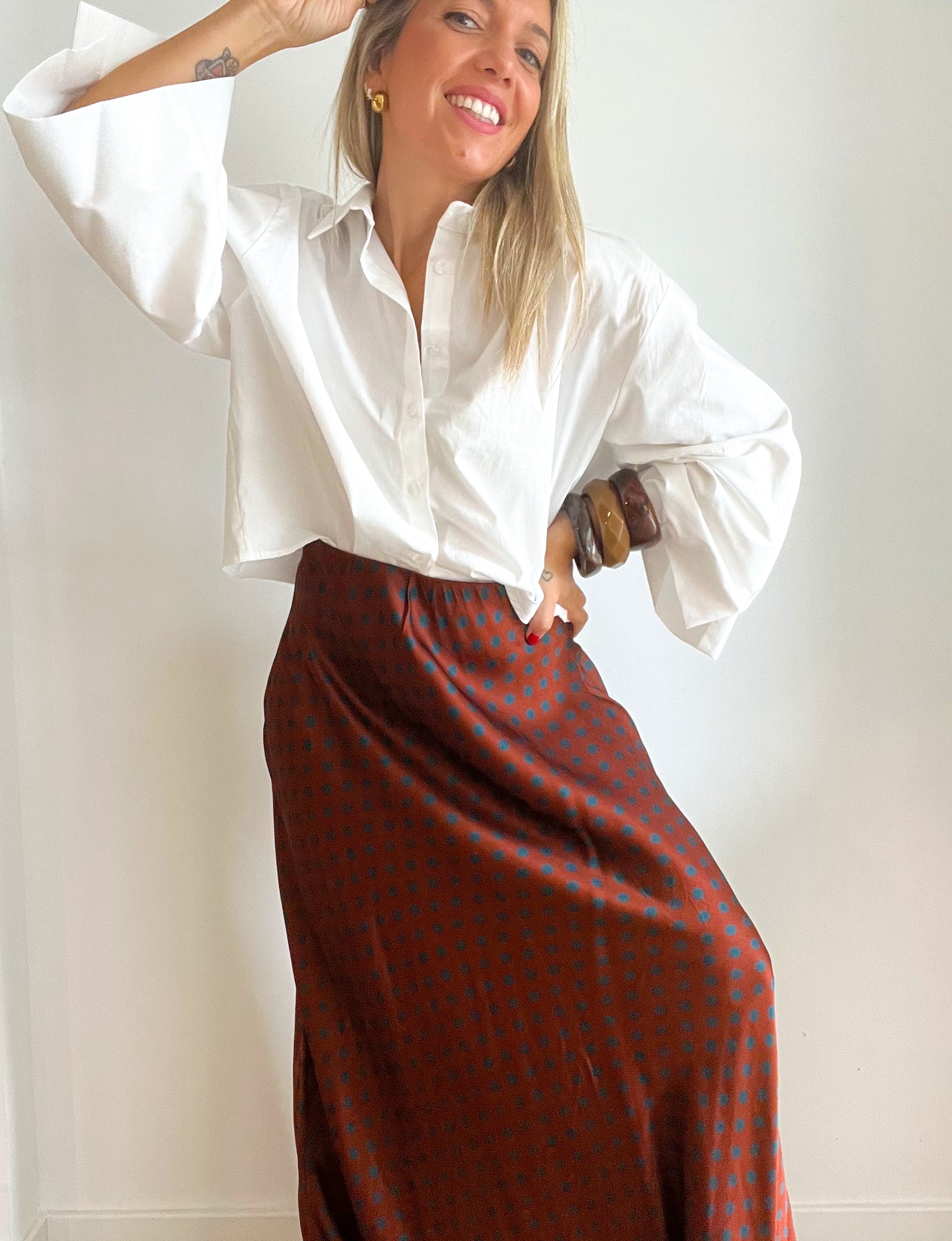 · Falda de Raso midi con cintura goma elástica. Fluida, sofisticada y femenina: la falda que combina comodidad con un estilo inconfundible.